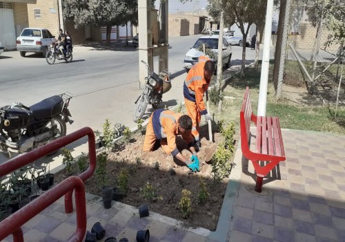 کاشت گل در پارک حاج درویش و روبروی کتابخانه